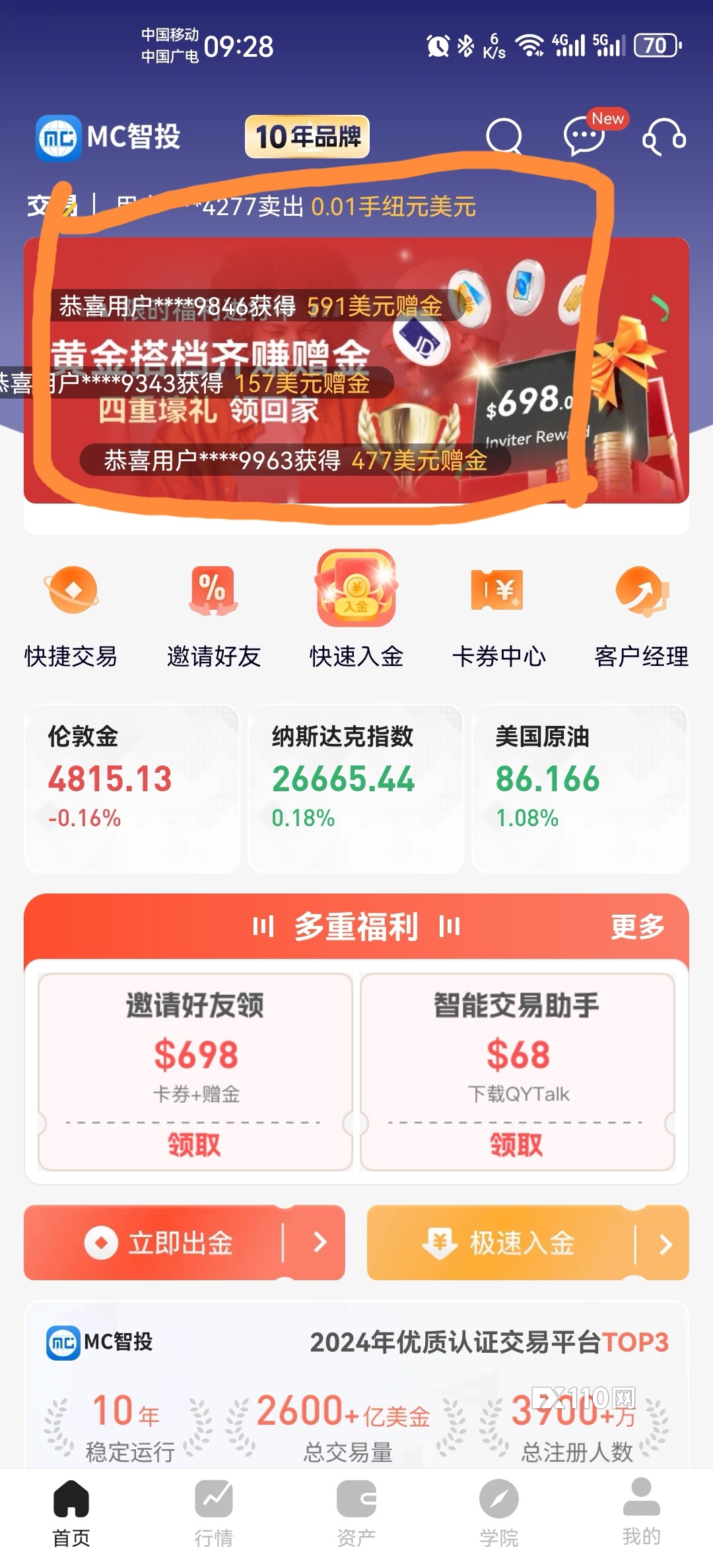 MC智投黑平台,我在这平台亏损70多万,平台一直在运营,平台存在间接喊单行为,虚假宣传,官网显示客户投资是流入国际市场,资金隔离,其实资金根本没有流入国际市场,我一直以为资金是流入国际市场的,没想到就是个挂羊头卖狗肉的对赌盘,入金门槛不断提高,特别在客户要爆仓时入金通道门槛很高,导致客户不能入金而爆仓,通过一些手段让客户多入金,入金高了赠金越多,多交易手数,手数多了赠金才越多,平台无牌照无监管,当客户想平仓或者其他关键时候就卡顿,通过各种手段来拉新,诱惑客户下单,平台不定时发布各种引诱活动,目的就是为了让客户频繁交易,导致客户爆仓。官方网站: